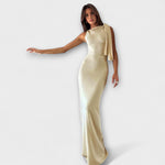 Erőfeszítés nélküli varázs egyszerű eleganciával: Ez a "off white" színű maxi ruha csomóval laza sziluettet kínál kiváló minőségű anyagokból, és kényelmes viseletet biztosít egész nap. Ideális esküvők, strandkirándulások vagy formális alkalmak számára, a minimalista eleganciát praktikus dizájnnal ötvözi.