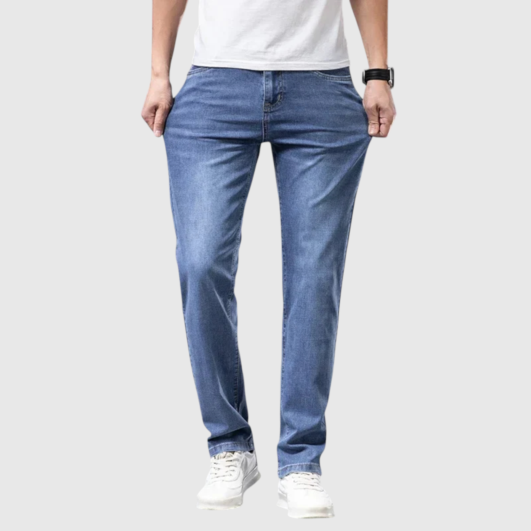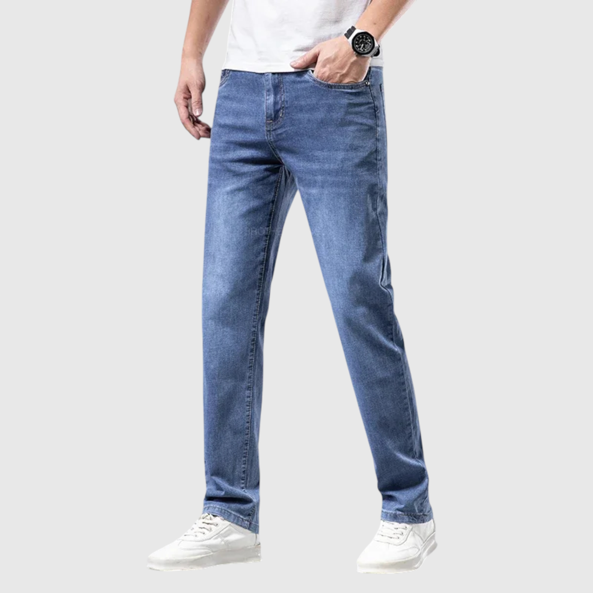 A Elegant Denim farmernadrágok férfiak számára készültek, akik egészséges megjelenést keresnek a farmer anyagban egy csipetnyi kifinomultsággal. Prémium farmer anyagból készültek, kényelmes, de egyben jól formált szabással - ideálisak elegáns hétköznapi öltözetekhez, hétvégi ruhákhoz vagy napi stílushoz.