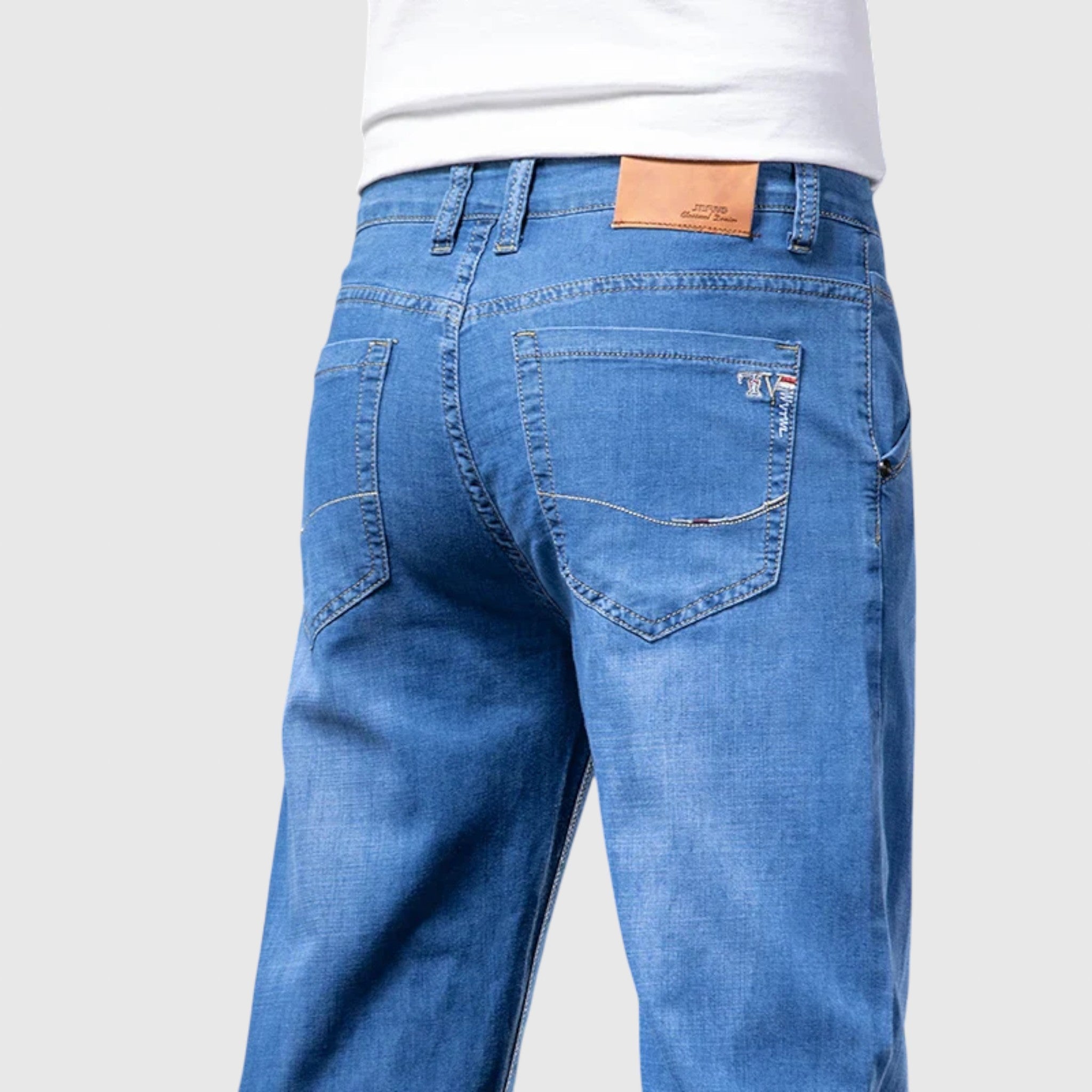 A Casual Straight Denim farmer a férfiak számára készült, akik értékelik az egyszerű és klasszikus megjelenést. Magas minőségű denim anyagból készült, strukturált, de kényelmes szabással, amely ideális a mindennapi viselethez - akár hivatalos, akár informális stílusban viseled.