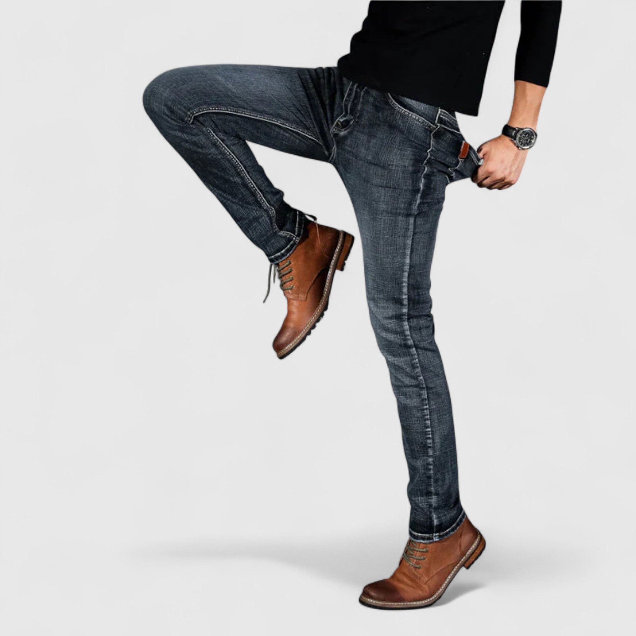 A prémium elasztikus farmer férfiak számára készült, akik értékelik a mozgást és az eleganciát. Magas minőségű elasztikus denim anyagból készült, rugalmas, de strukturált illeszkedést kínál – ideális egész napos viseletre, informális sétákra vagy smart-casual stílushoz.