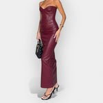 Midi bőrujjú ruha modern stílusú kifejezéssel