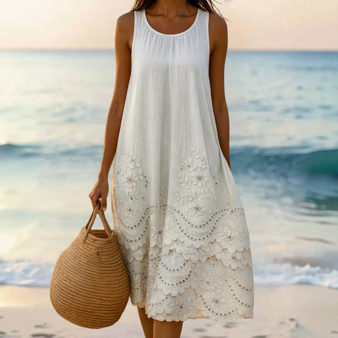 Az Eliana ruha tökéletes kombinációja a laza kényelemnek és a nőies eleganciának. Texturált anyagával és laza szabásával egész nap frissnek és kényelmesnek fogja érezni magát. A puffos ujjú és nőies sziluett, rugalmas fűzővel, játékos, de kifinomult megjelenést kölcsönöz a ruhának, ideális nyári napokra és esti eseményekre.