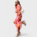Napi elegancia könnyedén! Öltözz fel a Klarisába | Csíkos Midi Ruhába és élvezd a megjelenést, ami olyan laza és gyönyörű, mint te. Ajándékozz magadnak egy ruhát, ami minden napot különlegessé tesz!