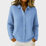 Elegáns hajtókájával, puha pamut keverékből készült kötésével és kedves szabásával ez a kardigán egy csipetnyi kifinomultságot ad a mindennapokhoz. Akár farmerral, szoknyával vagy ruhával viseled, az Elaine az a finom és stílusos érintés, amit a nők imádnak.