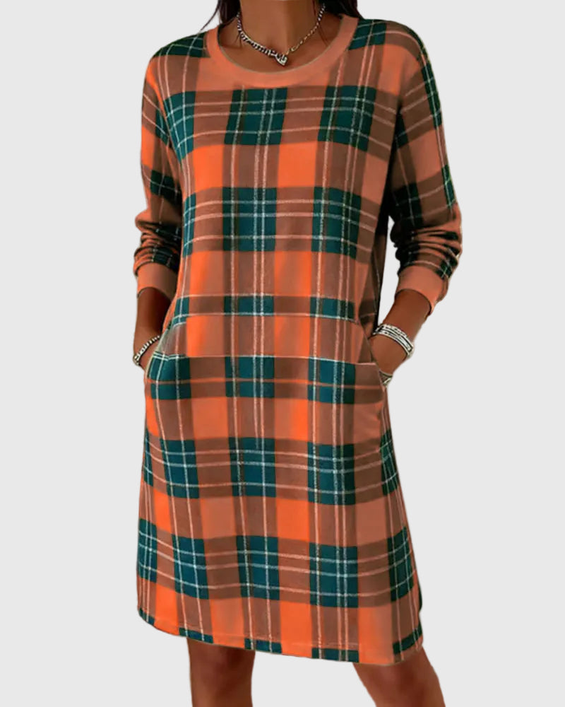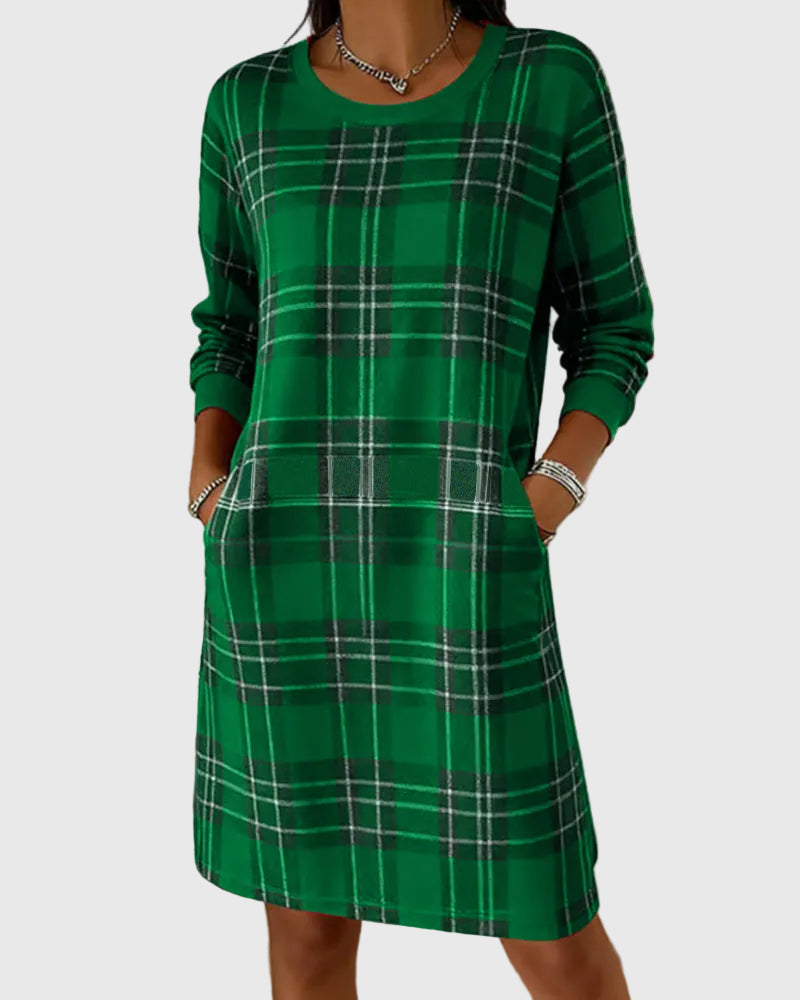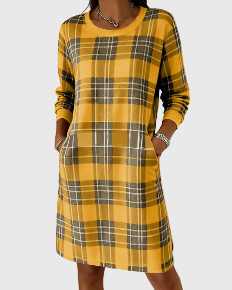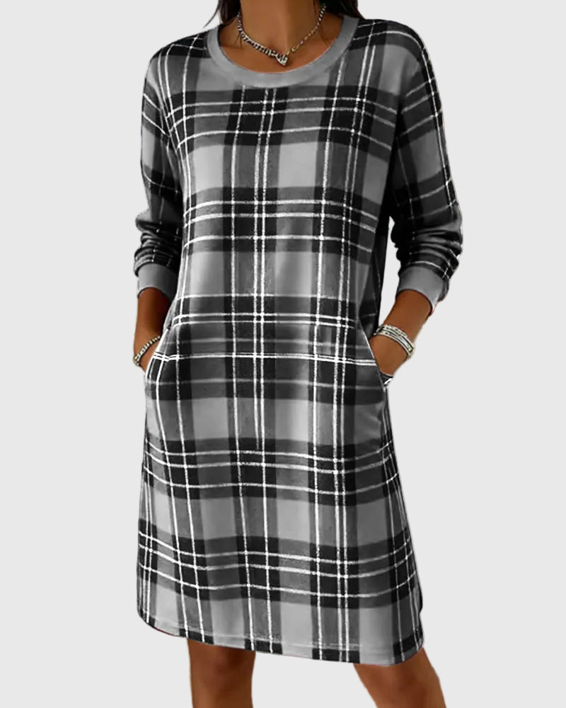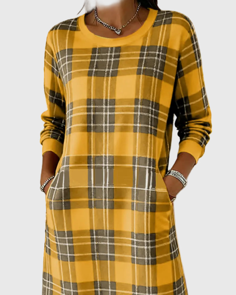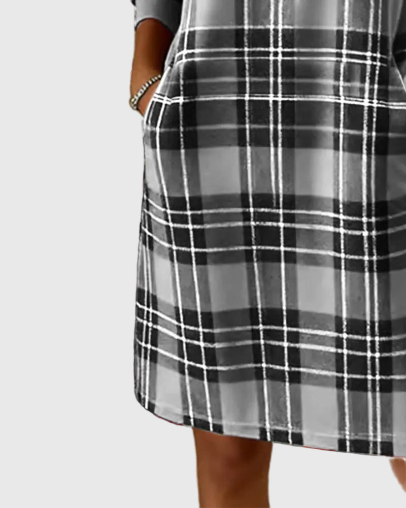Hosszú Ujjú Kockás Pólóruha