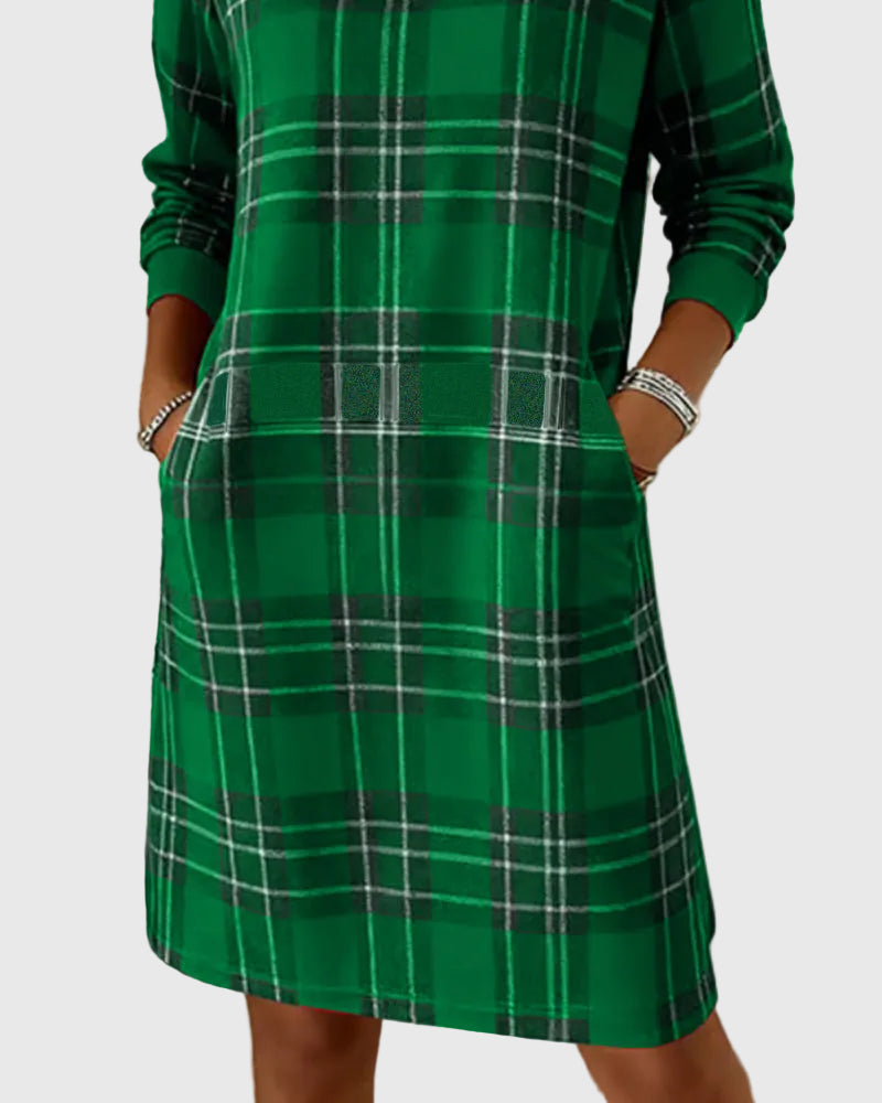 Az Eloise ruha a puha, meleg sweatshirt-anyag kényelmét ötvözi az időtálló kockás mintával, így egy laza, mégis igényes sziluettet teremt. Tökéletes hűvös reggelekre, hétköznapi programokra vagy otthoni, meghitt délutánokra — ideális egyensúlyt kínál kényelem, melegség és természetes elegancia között.